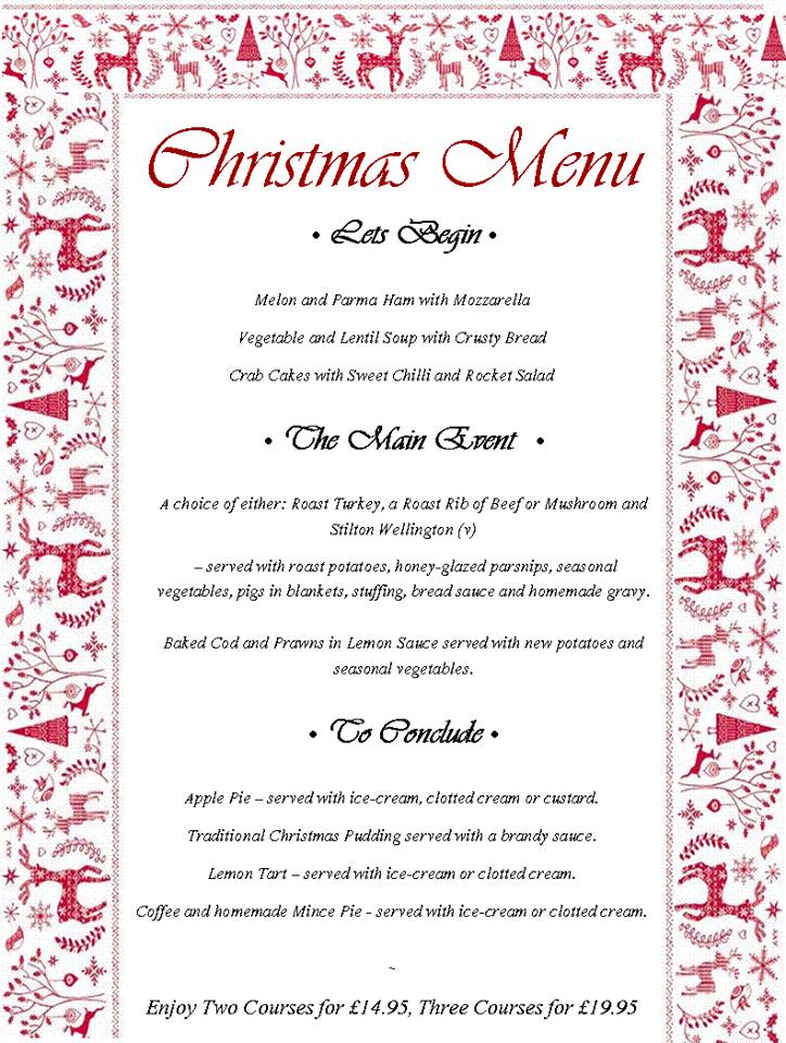 Angarrack Inn Christmas menu - available now for booked groups 10+ 14th-24th smaller groups