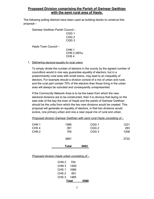 - 180202 | Proposed Division comprising the Parish of Gwinear Gwithian with the semi rural area of Hayle
