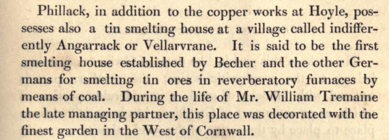 1838 | Tin smelting house at village called Angarrack or Vellarvrane... was decorated with finest garden in West of Cornwall