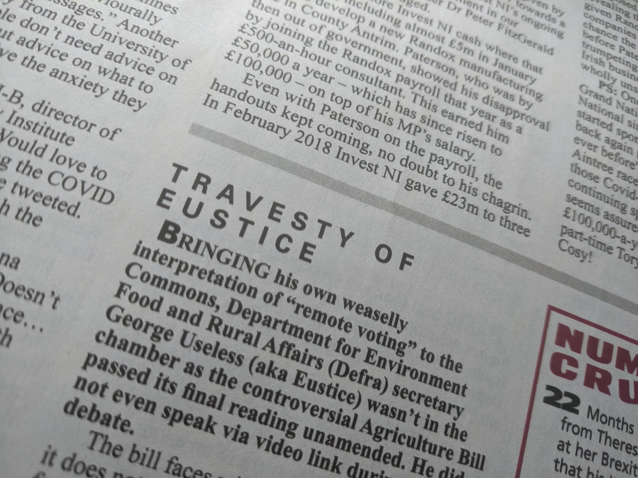 George Eustice MP ‘How can we now believe a word either Mr Eustice or Mr Johnson says? As recent events have shown, perhaps we should ask the Prime Minister’s chief political adviser what their real policies are, as self-evidently it is Dominic Cummings who makes the real decisions in government’.