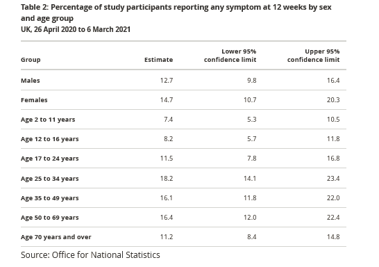 210331 | Children - 7.4% of those aged 2-11 years 8.2% of those aged 12-16 years - LongCovid - ONS Statistics