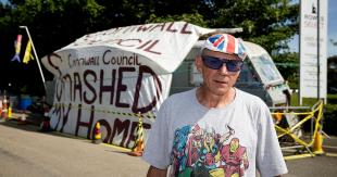 Neil Wainwright has also draped a large banner over his camper van near Hayle saying 'Cornwall Council smashed my home' read more »