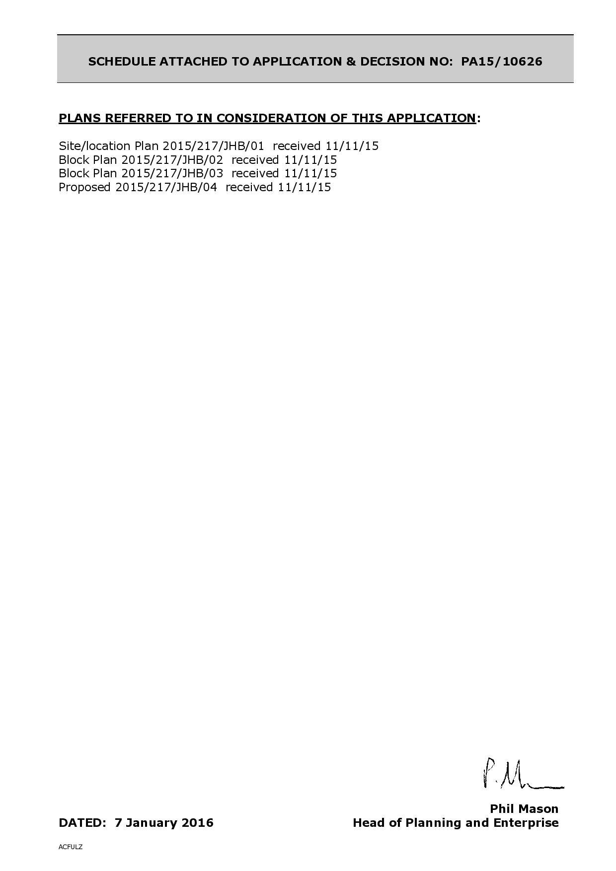 Ref. No: PA15/10626 | Received date: Wed 11 Nov 2015 | Status: Approved with conditions | Case Type: Planning Application