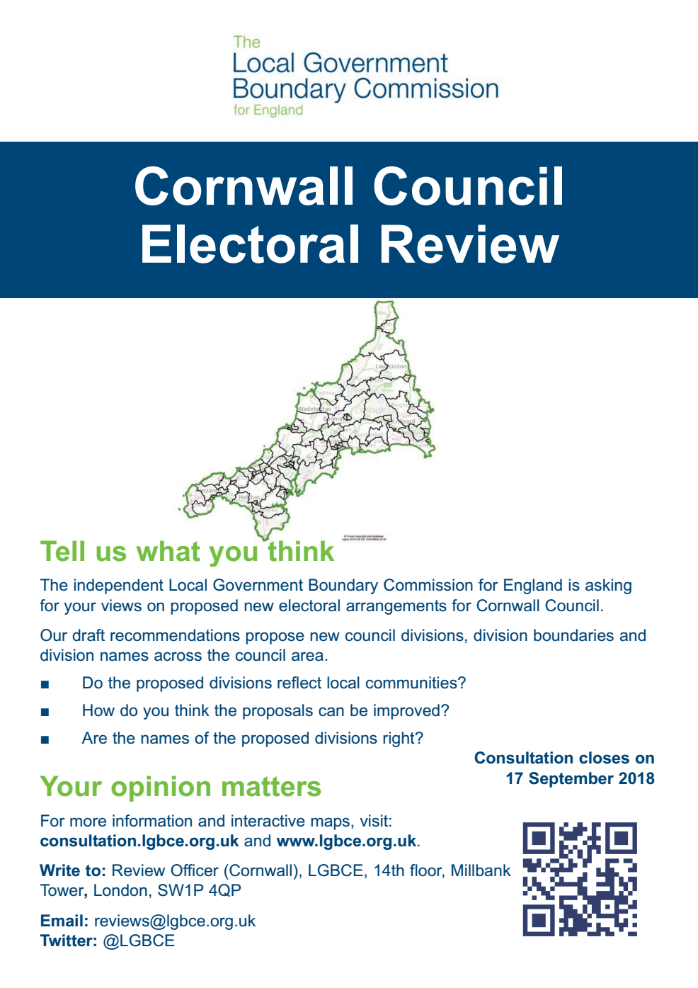 The proposed new Cornwall Council boundary - have your say - This stage of the consultation closes on 17 September 2018