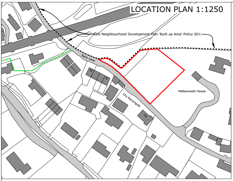 Outline planning permission with some matters reserved (access): Construction of up to three dwellings - Land Adj To 17 Back Lane Angarrack Cornwall TR27 5JE