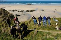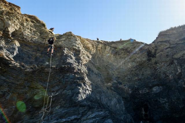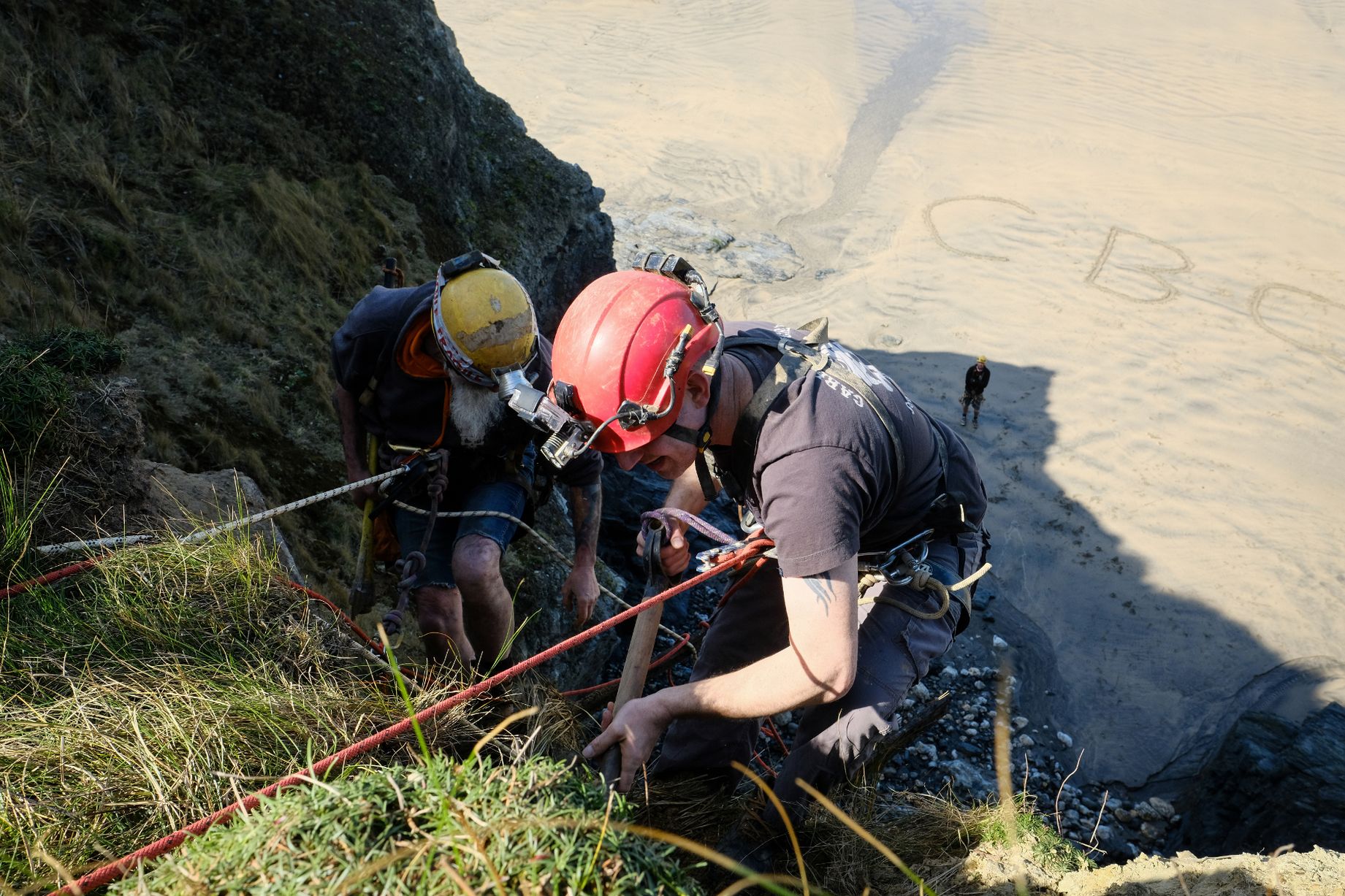 Dangling safely over the cliff-edge, members of the crew cleared away vegetation that was obscuring the cart, making it more visible for beach-goers to spot. Graham Wall and Sam Perkin from Carbis Bay Crew summarise the history of the cart, clearing up some of the recent speculation that it is a mine cart from the nearby Wheal Emily, a lead and copper mine which was abandoned in 1877.