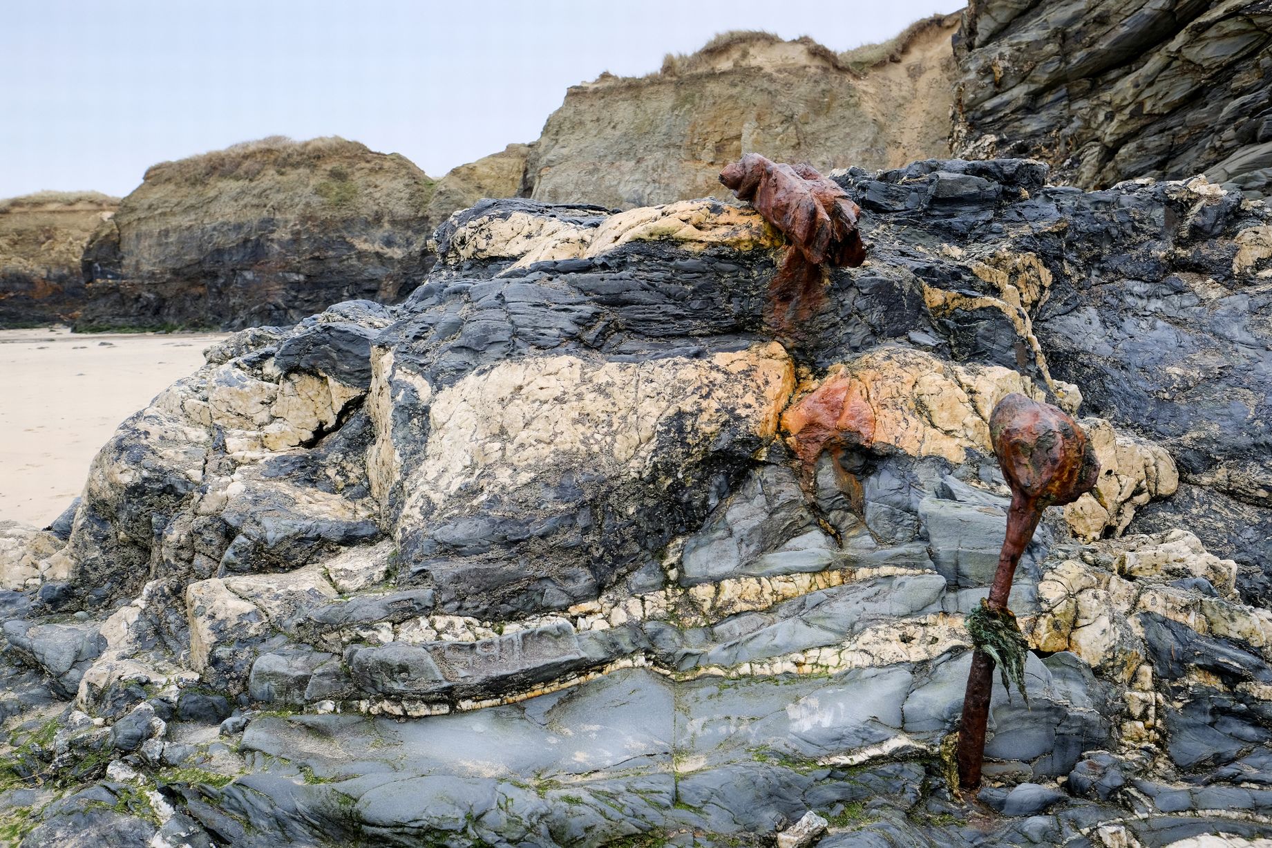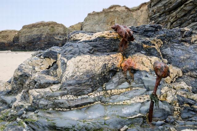 Walkers enjoying their daily exercise at a beach in Cornwall have recently been noticing a strange object jutting out of the cliff.