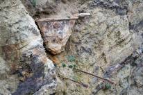 This unexpected slice of history jutting out of a cliff at Gwithian, can be added to an ever-growing list of obscurities emerging from the three-mile stretch of sand, which already includes a Victorian shipwreck, a 30-year-old Land Rover, and a mysterious road to nowhere in the middle of the beach.