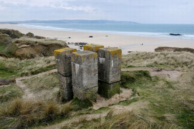 The concrete foundations of these pylons can still be found today, dotted across the dunes in a line from the beach to the Red River.