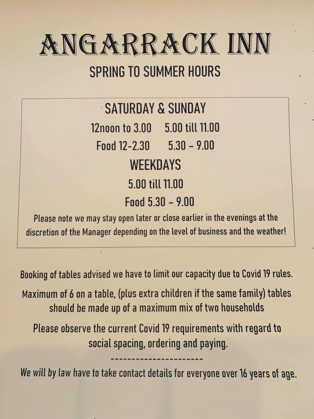 Angarrack Inn 16 May - Opening times from Monday the 17th