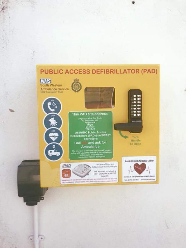 Please let everyone know the defibrillator is now fitted on the pub outside wall . Should anyone need