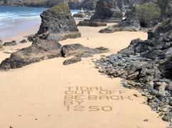 Warning about deep hole causing rip current at Cornish beach