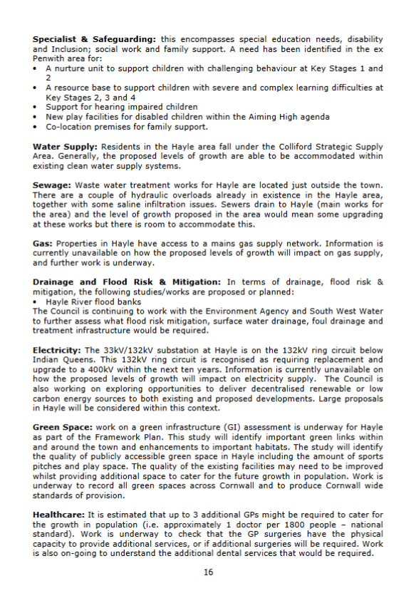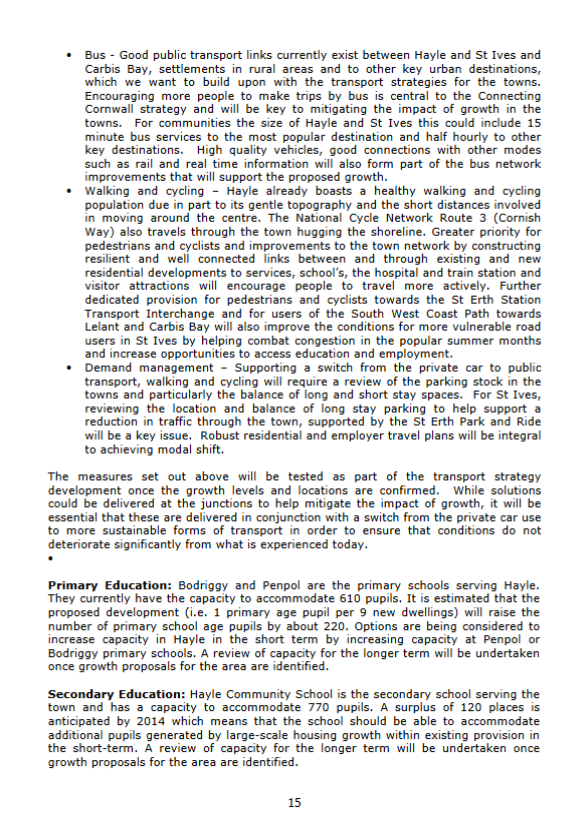strategy for Hayle and St Ives that will support the predicted levels of housing and
