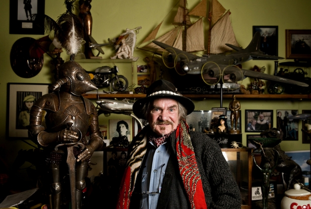 The globetrotting Londoner moved to Cornwall in 1983 to escape the rat race and has a workspace which is a treasure trove littered with armour and weapons, complete with a bust of Schwarzenegger and a life-size model of Russell Crowe.