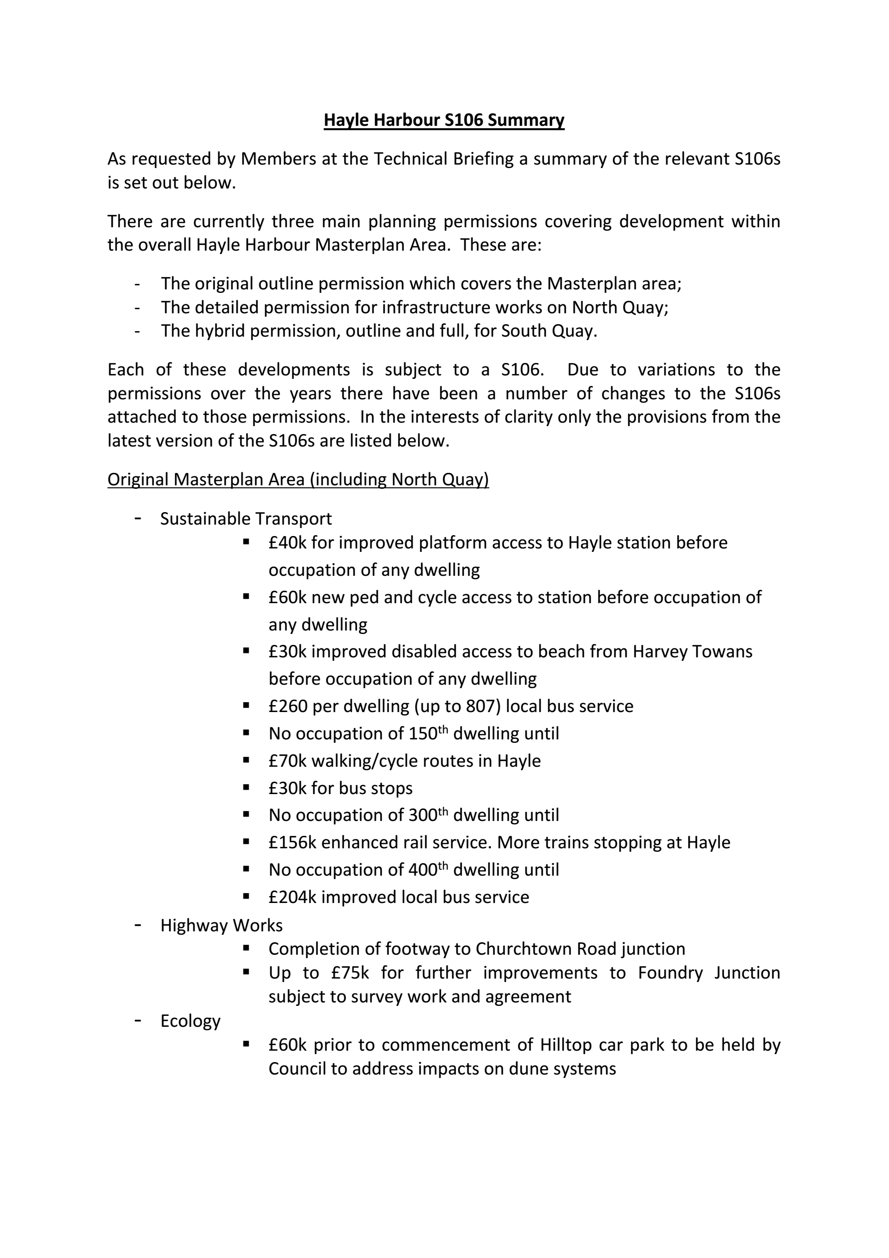 Hayle Harbour S106 Summary