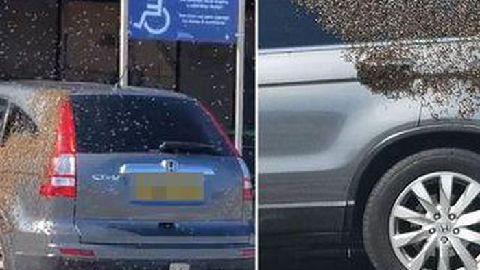 190520 | Swarm of bees smother car after 'moving house' in ASDA car park