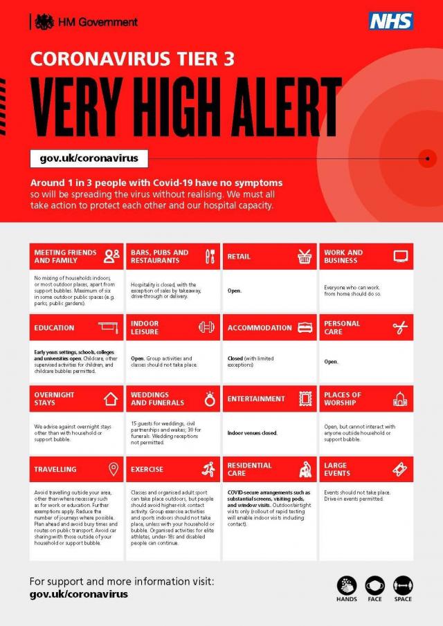 What you can and cannot do in an area in Tier 3 of local restrictions.