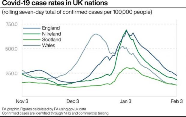 The seven-day rolling total of cases has now dropped to 513 cases recorded in the seven days leading up to February 4. Data from the most recent five days is not shown due to being incomplete.