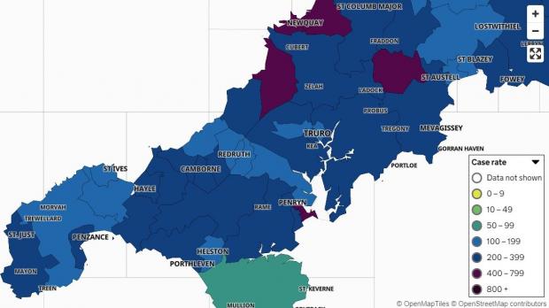 The number of new daily cases in Cornwall and the Isles of Scilly has risen to 308 in the last 24 hours, from 262 yesterday.