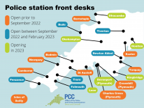 The next phase of Alison Hernandez’s project to reopen police enquiry offices (PEOs) will see stations reopened to the public in Devonport (Plymouth), Looe, Ilfracombe, Honiton, Okehampton and Kingsbridge in the 12 months to April 2024.