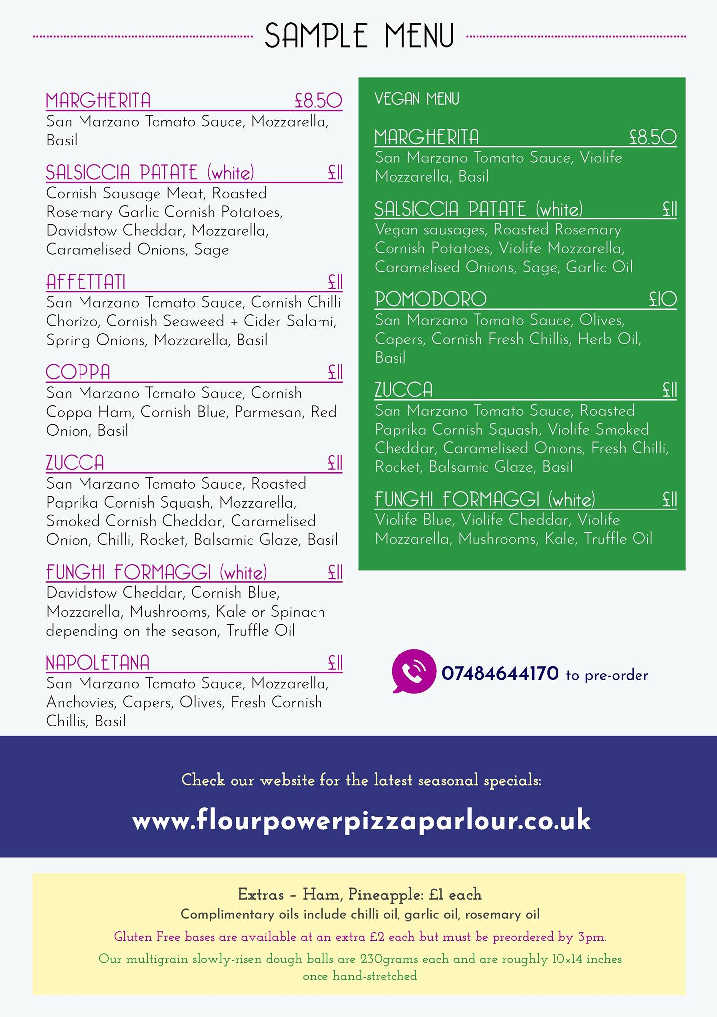 It’s Saturday and we’re at Hayle Rugby Club this evening 5-8pm serving up our artisan pizzas as well as homemade brownies and tiffin from @cornishtraybakes Menu -www.flourpowerpizzaparlour.co.uk/menu Gluten Free bases are available at an extra £2 each but must be preordered by 3pm