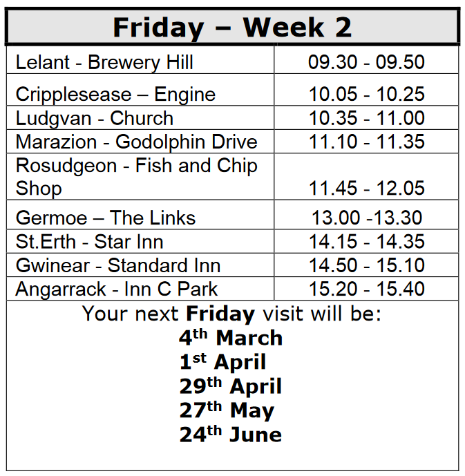 The mobile library stops at Angarrack this Friday - at the Angarrack Inn car park