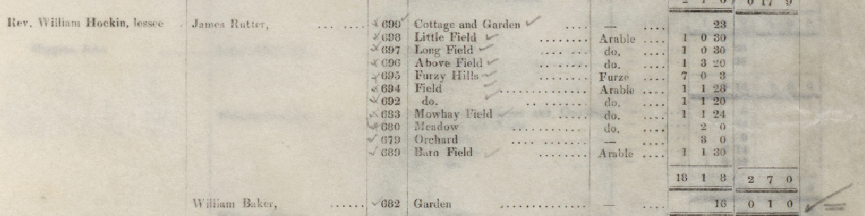 - 1842 Tithe | James Rutter 699,698,697,696,695,694,692,683,680,679,689| Cottage and Garden