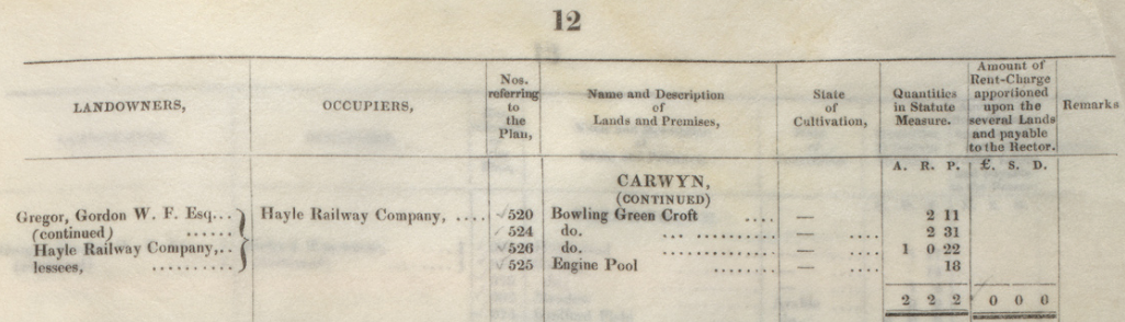 1842 Tithe | Carwyn T520,524,526,525 Hayle Railway Company