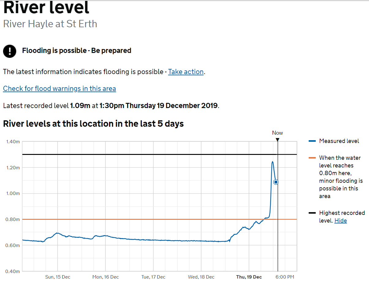 191219 | Here is the gauge data for River Hayle illustrating just how quickly river level rose following significant rainfall