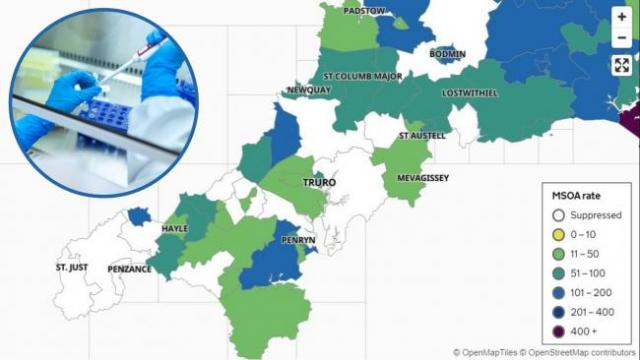 However, cases in Marazion, St Erth & Gwinear Gwithian have reduced from ten to six and large portions of West Cornwall no longer register on the map.